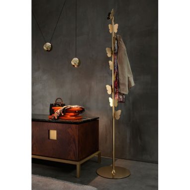 Coats flit from coat hanger to coat hanger like butterfly goes from one flower to another. Butterflies have been a source of inspiration through Art History. From the ancient Egypt’s, to the Renaissance until now it has always been a theme. The Butterfly coat hanger is both playful and elegant.