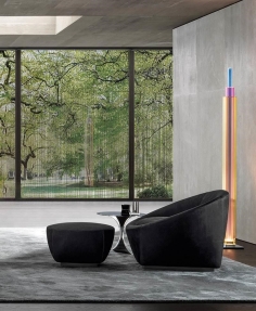 The Capri Base ottoman echoes the lines of the eponymous armchair – a re-edition of the iconic Capri armchair designed by Gordon Guillaumier.Available in two different sizes, it rests on a square Pewter-coloured metal base.Its upholstered volume, with its versatile character, is perfect in combination with the Capri Base armchair, but also alongside the other seats in the collection, offering pleasant moments of relaxation in any living environment.