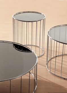 Three coffee tables with a natural bent for lightness. The emphasis could be on the design of empty spaces, since the use of materials has been reduced to the smallest possible extent. Thin columns supporting the minimal surfaces are all that is left. What a character, what expressive power, anyway! “Less is more“.