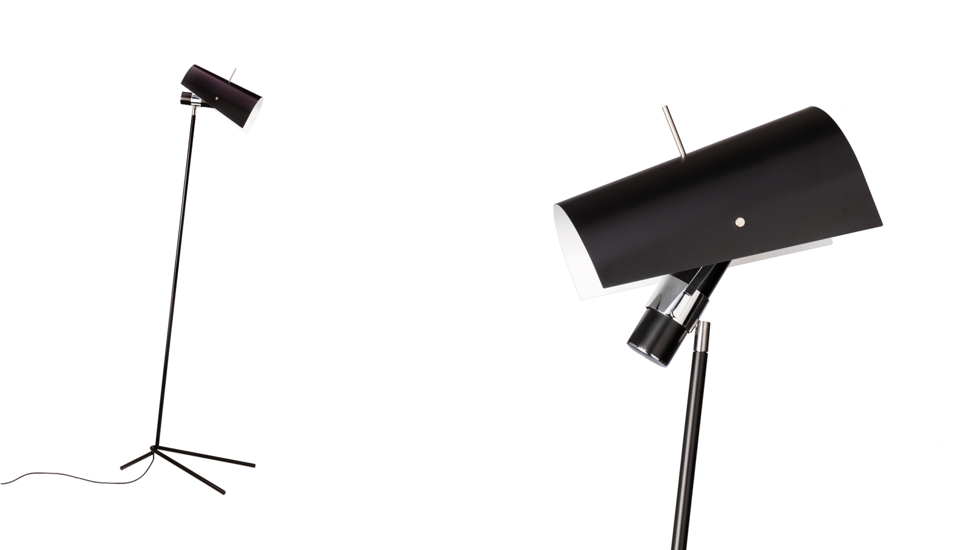 In 1946, Vico Magistretti conceived Claritas, his first lighting design, which conceptually aimed for clarity and brightness. In a context of reconstruction and reconversion of the war industry, for the first time Magistretti used bent metal tubes and a curved aluminium sheet as a reflector, which could be oriented and regulated, ensuring the desired lighting effect.