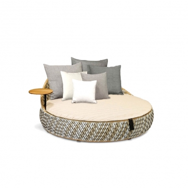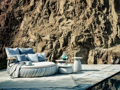 DALA takes inspiration from the artisanship and improvised seating arrangements of the developing world. Surface and structure merge in this versatile collection by Stephen Burks, each piece starting as a powder-coated frame of aluminum mesh through which DEDON’s master weavers thread colorful strands of our revolutionary new ecological fiber.