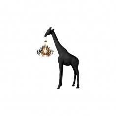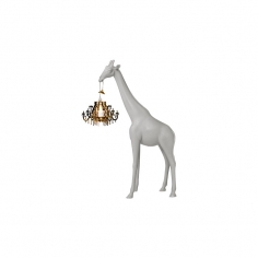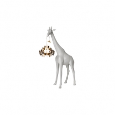 Giraffe In Love XS, designed by Marcantonio, is a giraffe that holds a Marie-Thérèse style chandelier, in the miniature version. The lamp becomes a versatile and playful design object that will keep away any stress from your desk.