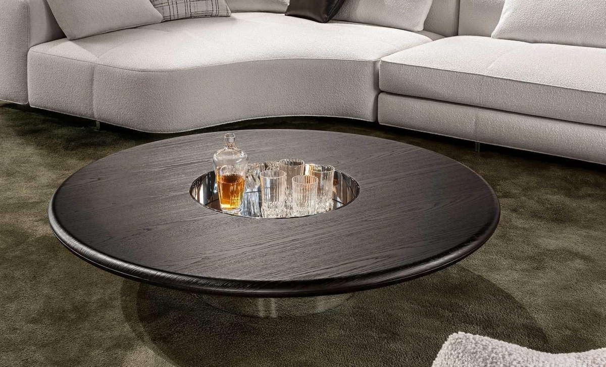 The base serves not only as a supporting element, but also as a functional storage tray in the centre of the top, ideal for accompanying moments of relaxation and conviviality.