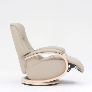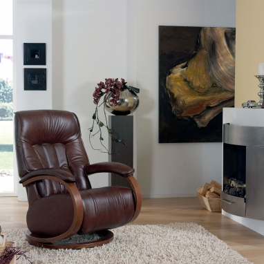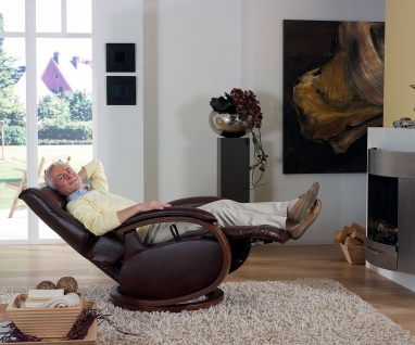 If you are looking for a comfortable recliner that impresses in all aspects visually, the Himolla Jedi Lazyboy Lounge Chair with its wooden swivel ring is the right choice for you. The television and reclining chair is distinguished by its innovative design. The seating furniture has a manual seat adjustment: While you can adjust the backrest to your needs using a loop and with the support of a gas pressure spring, you can easily change the position of the legrest with body pressure. An inclination angle adjustment of the headrest is also possible without any problems. This Cumuly variant is equipped with a wooden rotating ring, which enables the seating to be rotated through 360 degrees.