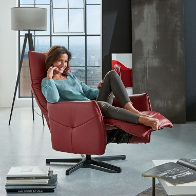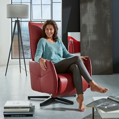 Come home, relax in the beloved armchair put it in the preferred position and relax in the process – the upholstered furniture manufacturer Himolla presents with its model 9920 a handsome place of tranquility with a feel-good character. Dressed in a leather cover and standing on a star base, the soloist is an eye-catcher for every living room. Whether placed separately in your reading corner in front of the well-stocked bookshelf, where you can have your tea in the afternoon, or as a supplement to the upholstered set, with the high-quality combination of a poly foam under cushion and a cold foam seat pad, you can sit and lean comfortably guaranteed. Bring yourself into a relaxed position, which relieves your body and your head and means that you don’t want to get up so quickly.