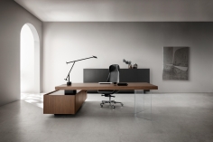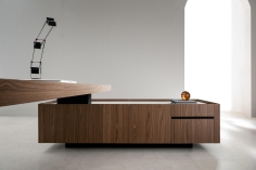 Kyo, a Japanese word meaning ‘strength’ is a collection of presidential, executive and meeting tables, where the simple shapes of the lines are enhanced by the use of materials and the thickness of the tops.