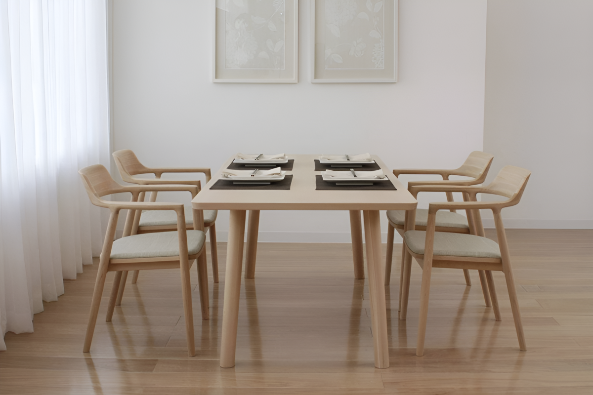 A table with a pure simplicity about it, it is made of oil-coated solid oak. The thick, round pillar legs give it a stable feel. The table will become more charming as time passes and goes perfectly with any type of chairs.