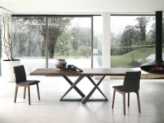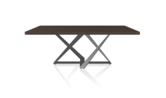 Fixed table with lacquered Metal frame. Top in Veneer wood, Veneer wood with solid edge Wood, Solid wood, Glossy glass, Supreme Velvet matt anti-scratch lacquered glass or SuperMarble.