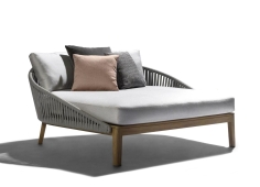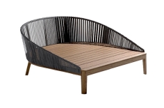 The airy design of the Mood collection and its warm combination of teak and handwoven backs will immediately create an intimate atmosphere on your patio. The rounded design of the durable teak gives the lounge bed a warm and friendly tone. The weave in Tricord has a very soft touch, but can nevertheless defy all weather conditions. Tribù has developed a range of natural colours that fit in with any type of outdoor environment. The comfortable outdoor cushions can be left out in the rain, thanks to the ventilating, water-repellent filling.