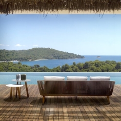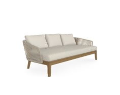 The airy design of the Mood collection and its warm combination of teak and handwoven backs will immediately create an intimate atmosphere on your patio. The rounded design of the durable teak gives the sofa a warm and friendly tone. The weave in Tricord has a very soft touch, but can nevertheless defy all weather conditions. Tribù has developed a range of natural colours that fit in with any type of outdoor environment. The comfortable outdoor cushions can be left out in the rain, thanks to the ventilating, water-repellent filling. The back cushions are available in various styles to match every taste.