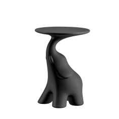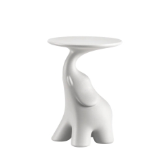 Pako is a small and colourful side table. With its long trunk it holds a circular top that allows to place various objects on top. Available in multiple colours and gold metal finishing.