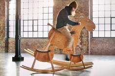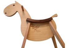 This breathtaking, beautifully designed wooden rocking horse is a must have item for any child – it will definitely be treasured and is sure to become a trusted and reliable family friend! Its safe and smooth lines, unique and surprising style make it cut a good figure anywhere in the home. Ergonomically shaped, functional, with fine joinery and no loose pieces it makes for a safe and enjoyable ride for little ones. The surface of the rocking horse is treated only with natural materials, wax and oil, so no paint will wear out during usage.
