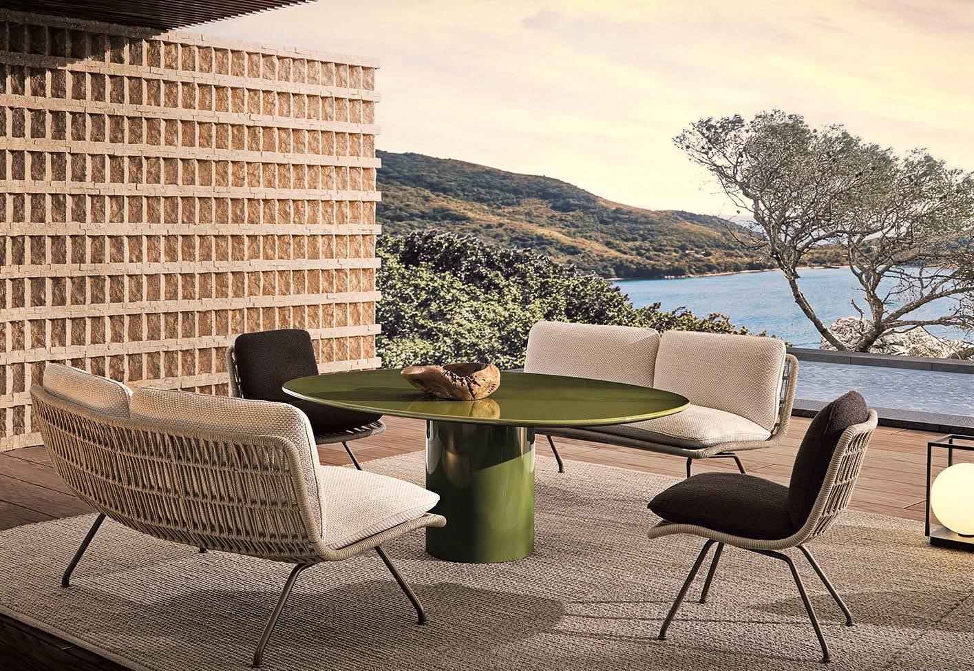 Pattie Cord Outdoor perfectly reflects Minotti’s philosophy, according to which indoor designs are reimagined for the outdoor world, retaining similar aesthetics and the same high level of comfort.