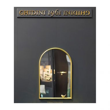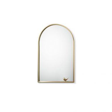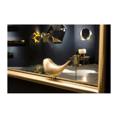 A classic Renaissance monofora is the form that inspired the two mirrors. The arc is defined by brass profile rounded at the bottom, just like on a windowsill to lean on, then a little bird appear: poetic quotations that lead to the practice of the portrait and games of reflections.