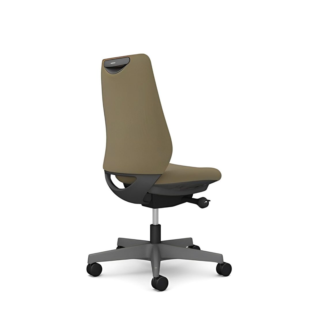 Potam’s design features soft forms with lightweight styling to match a variety of interiors and personal styles. The compact size and shape make it suitable for both office and home use. The combination of functionality, comfort, and sustainability makes this chair a great choice for anyone looking for an ergonomic and environmentally conscious seating option. Performance resin from old chairs is incorporated into new legs, and the chair fabric features 100% recycled content, such as RENU made from waste from the fashion industry, and RE:NET made from recycled fishing nets.