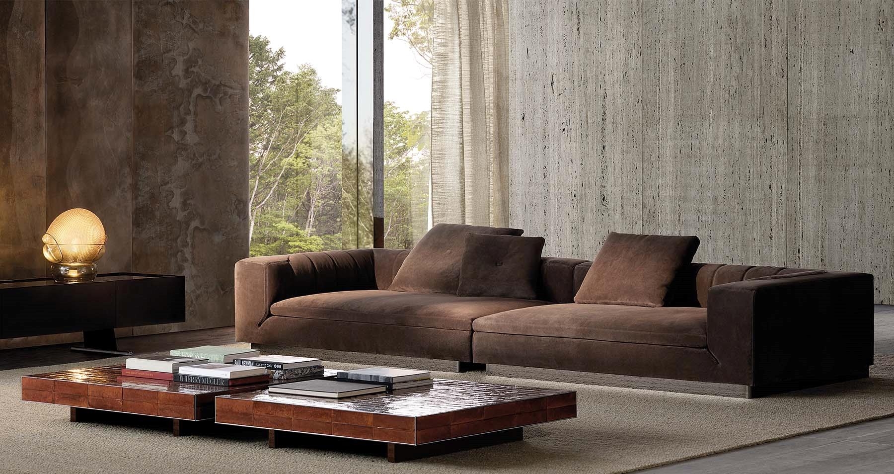 A sinuous geometric pattern defines the identity of the Riley seating system by Hannes Peer. With a timeless aesthetic, characteristic of Minotti’s stylistic language, it is defined by the architect as “a dynamic and versatile design that interprets the embrace of two perfectly complementary souls, balanced between restraint and expressiveness, rigour and ease, permanence and fluidity. One is distinctly architectural, outward-facing, while the other is softer on the interior, featuring a strong decorative sign that extends an invitation to relax.”