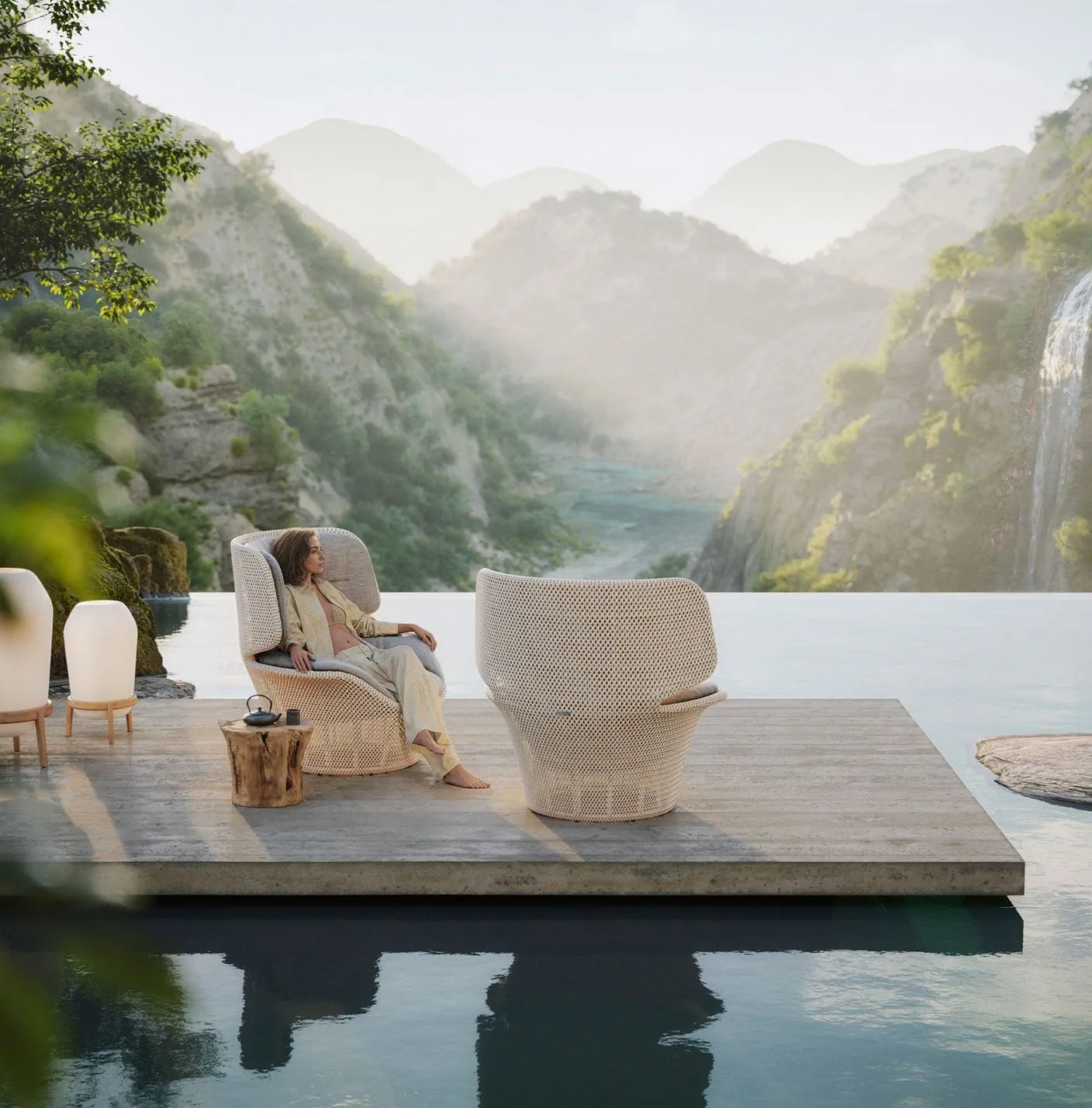 Jean-Marie Massaud has opened a new chapter for the iconic DEDON SEASHELL series with the SEASHELL GRAND collection. Inspired by the gentle embrace of a seashell, SEASHELL GRAND, as a sister collection to SEASHELL NUO, offers a sense of security and comfort. Handcrafted by DEDON’s master weavers, this collection combines traditional craftsmanship with modern innovation. The updated SEASHELL range introduces DEDON’s EcoCycle Fiber. Derived 90% from renewable plant-based resources, DEDON EcoCycle Fiber is an eco-friendly alternative to conventional, fossil-fuel-based products. It offers the same luxurious appearance and texture as proven DEDON Fiber along with the same unrivaled strength and weatherability.