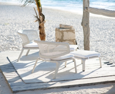There’s a remarkable lightness to the SEASHELL collection by Jean-Marie Massaud, a breeziness that belies its sturdy construction and efficient, stackable design. Perfect for large spaces such as pool areas and restaurants as well as intimate settings, SEASHELL features backrests that look and feel like an open embrace and an airy weave as breathable as it is artful.