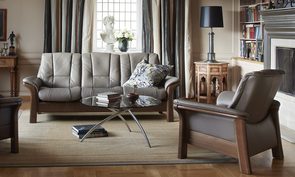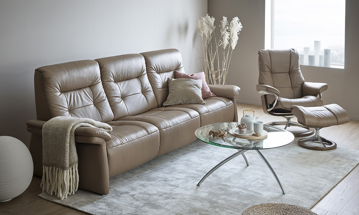 Elegant and stylish with a sculptural edge. The Stressless Enigma table with its gracefully aluminum and clear glass look fits a whole range of Stressless furniture and stands perfectly alongside models with details in aluminium or steel.