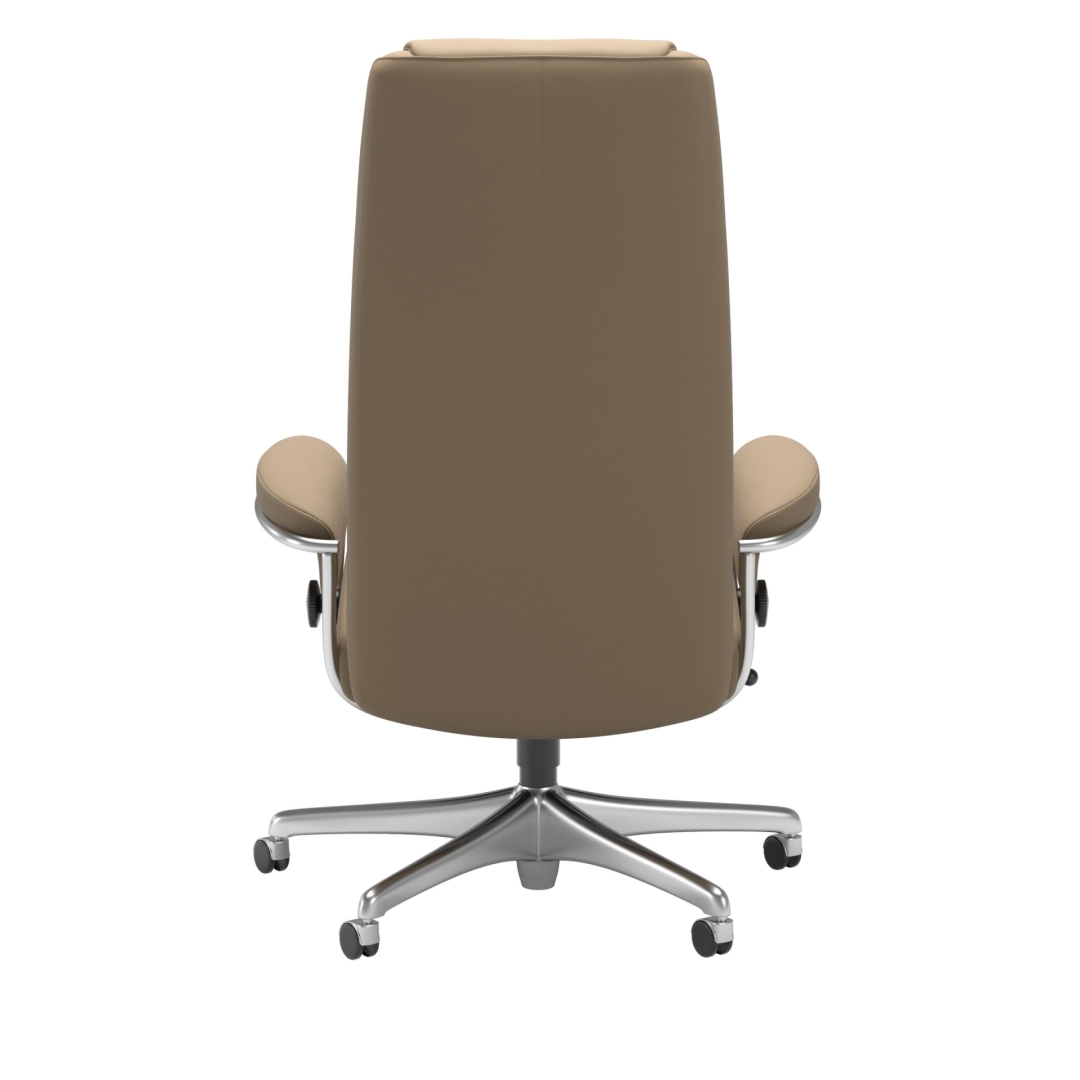 The Stressless Paris Home Office chair has a slender and elegant shape. The addition of our well-known Stressless features results in a modern-looking chair with sublime comfort. This design is available with three different back heights: Low-Back, High-Back and with Adjustable Headrest (+ 4 in). The wheels on the base make it easy to move around and there is also a lever for height adjustment.