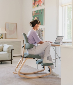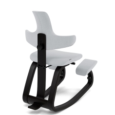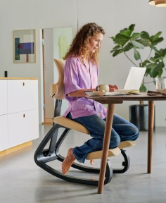 Thatsit™ is an evolution of the iconic Variable. It is an ideal work chair for either the home or the office and is designed for seamless transitions between different positions. It features a wider seat, a fixed backrest, adjustable in both height and depth, and adjustable shin rests. The wingback is a perfect spot to rest your elbows or turn around and lean your torso against it for variation. The chair invites you to lean both in and back. Thatsit™ is adjustable, allowing you to find the setting that best supports you. Thatsit™ is available in a natural or black finish and a wide range of upholstery fabrics and colors. The wooden runners are made from layers of beech and ash veneer.