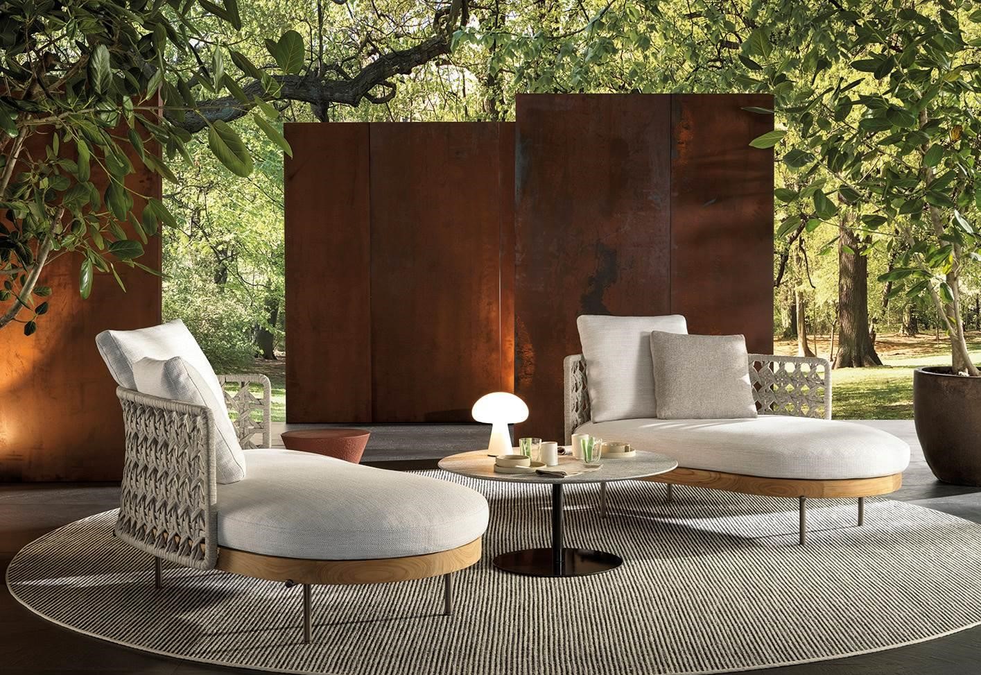 With its sophisticated, light look, Torii Nest Outdoor comes in pieces of different sizes and types, from fixed and swivel armchair to two-seater sofa with curved silhouette and round chaise-longue, all designed to meet a variety of requirements, both in terms of functionality and ergonomics.