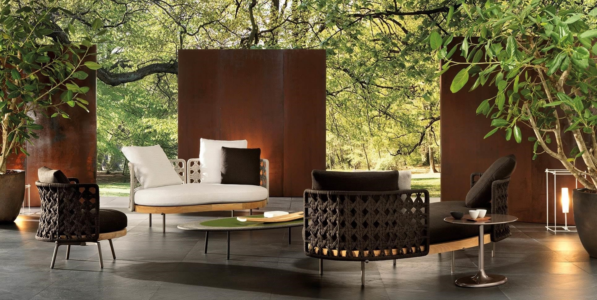 Designed for indoor environments in 2020, Torii Nest migrates to open-air living spaces, bringing to life an entire family of seats.