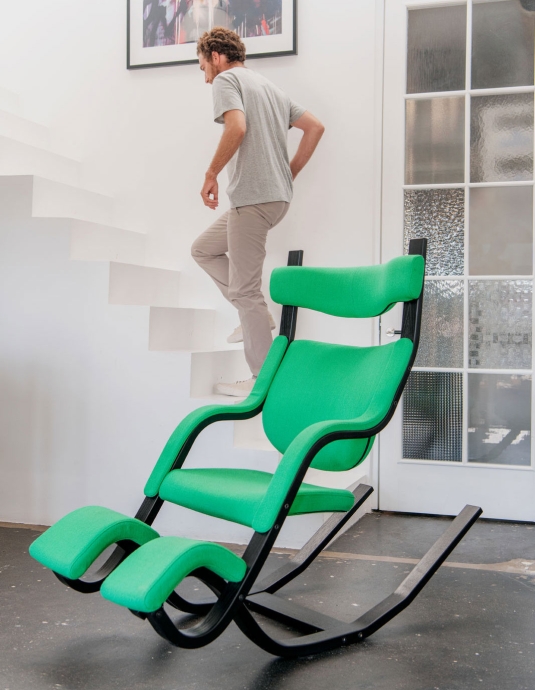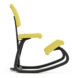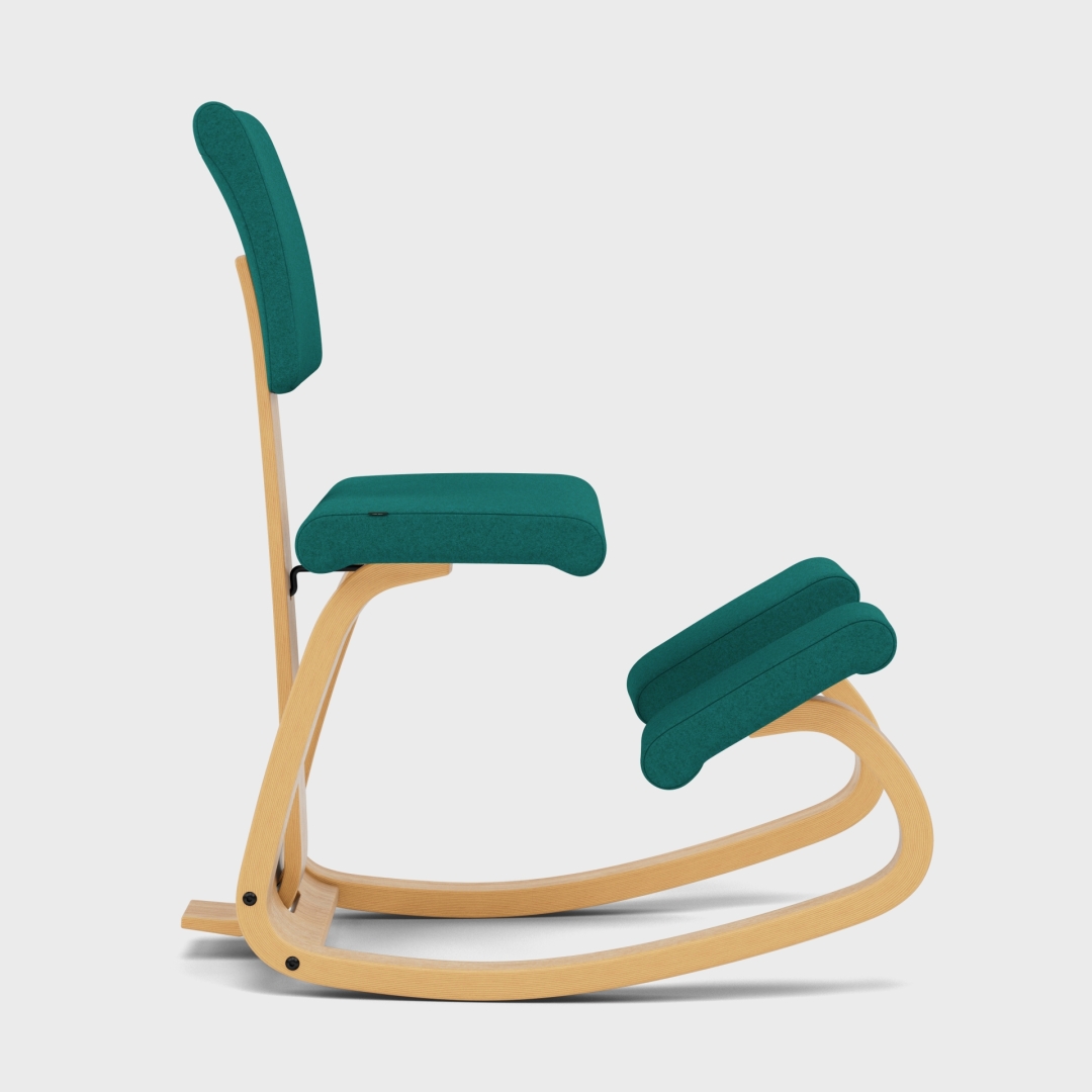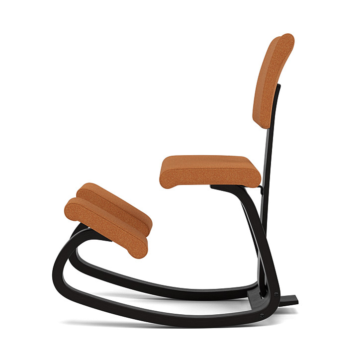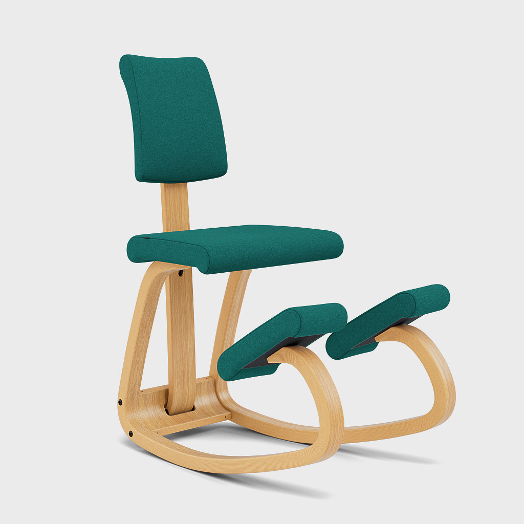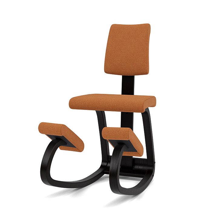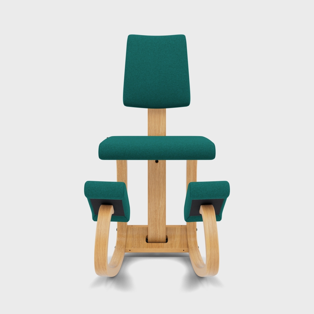 Variable™ Plus is an advancement of the iconic Variable™. Featuring a fixed backrest with an upholstered cushion, the chair inspires you to vary between a wider range of sitting positions, while still providing the unparalleled functionality of the original kneeling chair. The backrest provides support when leaning back, shift your weight forward and the shin cushions offer support while you focus on the task in front of you. The curvature of the wooden runners is optimized, ensuring that finding and holding a balanced position is both effortless and intuitive. Variable™ Plus is suitable for use by any standard height table. The chair is available in a natural or black finish, and a wide range of upholstery fabrics and colors. The wooden parts are made from layers of beech and ash veneer.