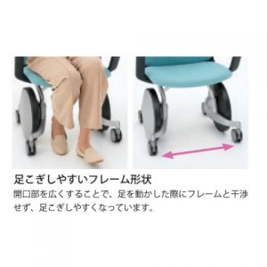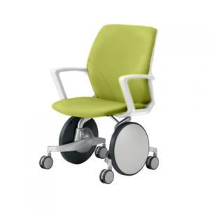 “Weltz-self” is a chair that moves safely and smoothly in any seating posture. It actively supports all kinds of user activities not only just in work spaces at offices and factories but also public facilities such as art museums and libraries. Mounting the large chair wheels near the seated body’s center-of-gravity gives a small turning radius so users get superb turning right on the spot they want! The wide opening around the leg area is designed to prevent interference between the legs and frame when users move around by pushing off with their legs. The Weltz self has evolved to a fun chair, for staff to wheel around the office space, ala Dr Xavier X-men. Moreover to match different user body types, the seat surface is adjustable in 3 steps, and setting a seat depth shallower than regular chairs allows moving around smoothly while still seated.