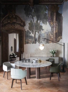 The Xi lamps, in blown glass and saddle-leather, allow themselves to be cradled by the space like lanterns. The light fitting combines two blown glass elements. The outer layer of glass, with its particular regular ridged surface, is transparent and comes in amber, emerald, sapphire or moonstone. The inner piece of glass, white with a pearl finish, makes the light warm and diffused.